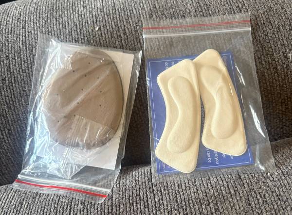 I am selling 2 pairs of shoes. The beige shoes were worn once and the black shoes were worn twice. The heel of the black shoe is approximately 2" and the heel of the beige shoe is approximately 2 1/4". There is a shadow on the side view of the beige shoe which is just a reflection from the nearby window.