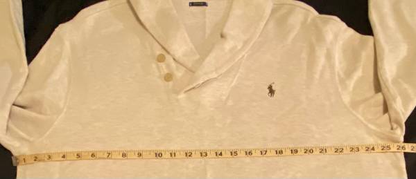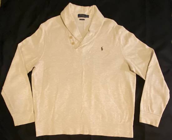 This Polo Ralph Lauren Sweater is a versatile and stylish addition to any man's wardrobe. The beige shawl collar and ribbed pullover design make it suitable for various occasions, from casual outings to more formal events. Made from 100% cotton, this lightweight sweater is breathable and perfect for all seasons. The classic Polo Pony logo embroidery adds a touch of preppy style, while the tight knit fabric ensures durability. Machine washable for easy care, this sweater is a timeless piece that will never go out of style.