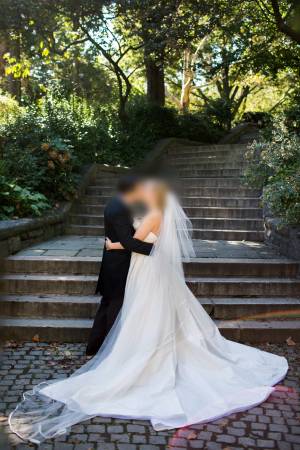 Selling my elegant Reem Acra wedding gown from the 2014 collection, purchased at Kleinfeld Bridal for $3,000 (retail $5,000–$8,000). Worn once and stored in our closet in the original Kleinfeld garment bag. This beautifully structured gown features ivory silk, a full pleated skirt, and a flattering strapless bodice with built-in cups.