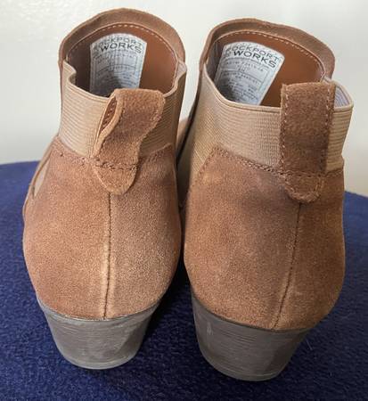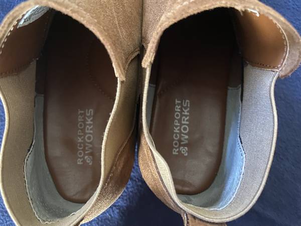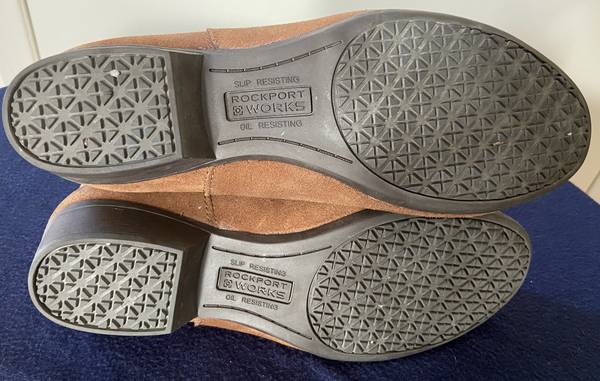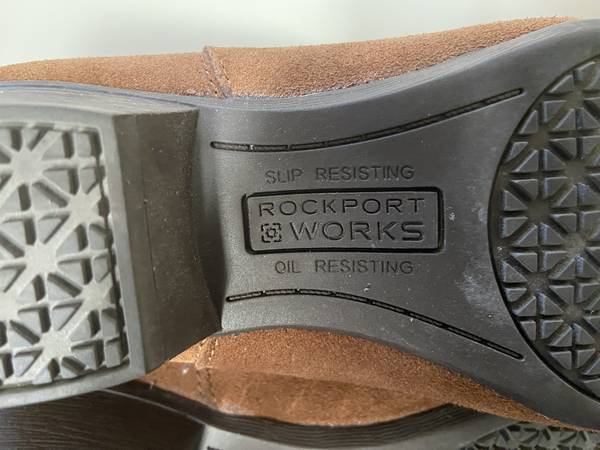 Rockport works women’s boots Excellent pre-owned condition Size: 9 D (though the boots marked as Wide) Twin core slip-on boots Slip resisting, oil resisting, hard toe cap Material: genuine suede...