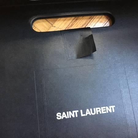 3 Saint Laurent bags and hanger. 24”x23”x8.5”; 22”x18”x8.5”; 11.5”x12”x4” Conditions as pictured.