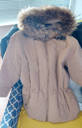 Andrew Marc coat with a fur trim hood. Comes from a smoke and pet free home: Size S/M. Bust 44 inches Length 28 inches. In a good condition.
