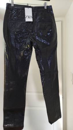 Brand new black faux leather pants with tags, size S.(women). Waist: 29.5 inches Legs; 31 inches Front 2 pockets. Zipper Brand new. Never worn. Upper west side: 66th street location. Pick up only