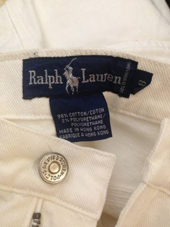Heavy, sturdy denim! Button fly front, YKK Zipper, RL Insignia Button, 4 Pockets, 5 Belt loops, 2 Inside hanging ties. Size 8. Waist 26", Hips 38", Length 17". Excellent like new condition. $45