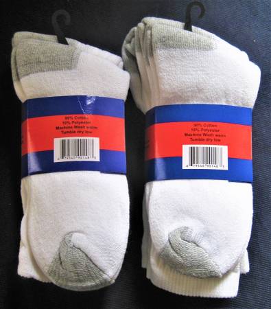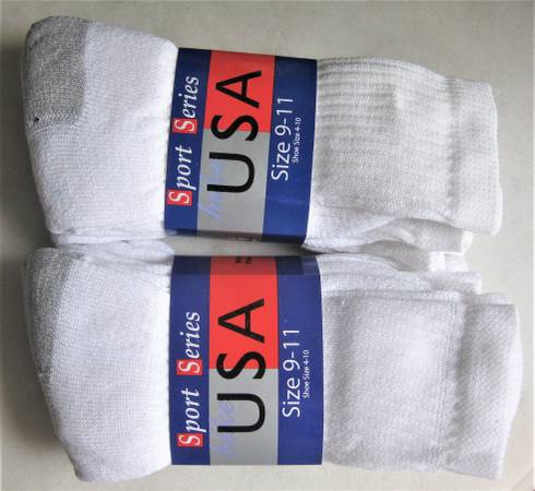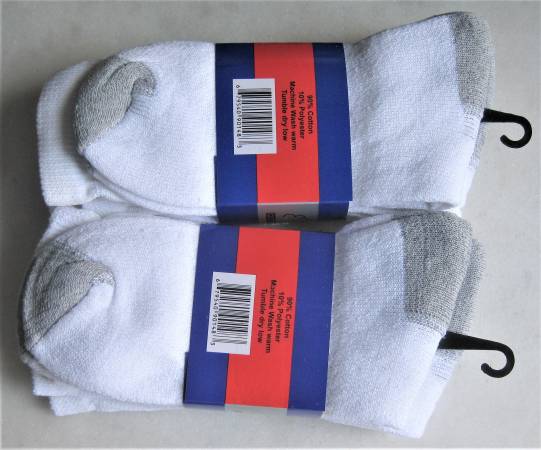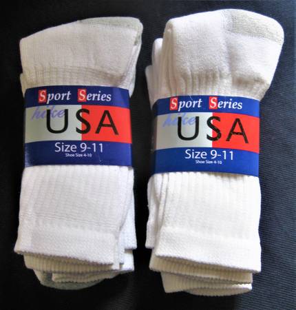 Socks NEW White Cotton 9 pairs Size: 9-11 (shoe size 4-10) 90% Cotton; 10% Polyester Made in Pakistan