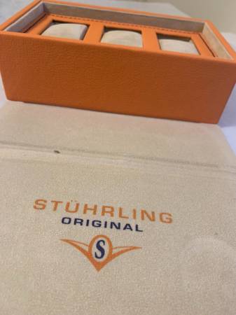 Stuhrling Original 3-slot Watch Box storage case ($50) ------------------------------------------------------------------- Stuhrling brand watch box - showing signs of age / wear (as pictured)....