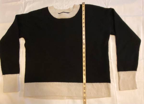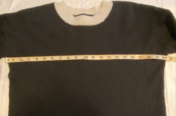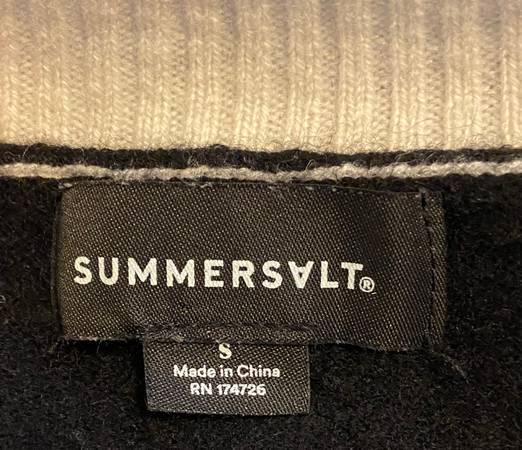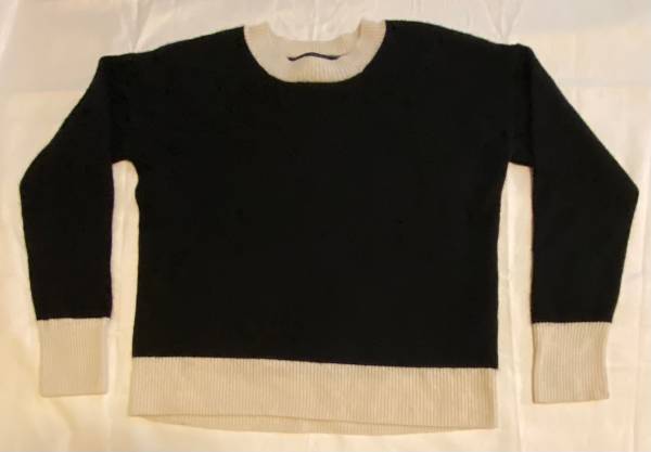 The SummerSalt Coziest Cashmere/Merino Blend Crewneck Sweater in size small is a sleek and stylish pullover perfect for casual occasions. Made from a luxurious blend of fine Merino wool and cashmere, this sweater is soft, lightweight, and breathable, making it ideal for layering in the winter, fall, or spring. The tight-knit construction and crew neck neckline provide a comfortable fit, while the solid black with ivory color adds a touch of elegance. Hand wash only to maintain its quality. Perfect for adding a touch of sophistication to any outfit.