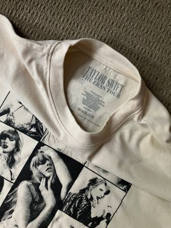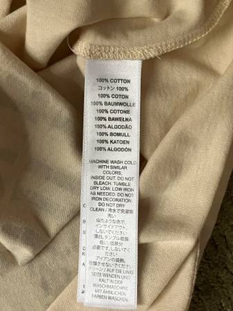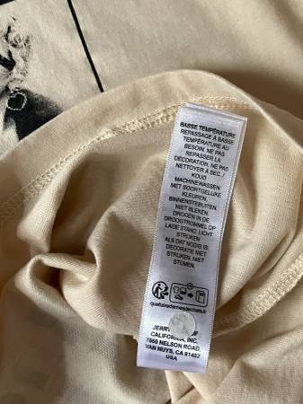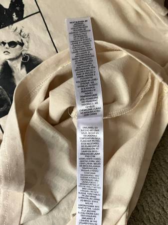 Beige & black short sleeved concert tee shirt.