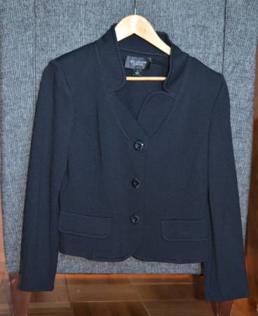 Two-piece ST. JOHN suit; jacket and skirt. Black. Size 10 - clothing...