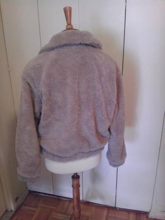Super Cute Soft Cozy Teddy! Keep warm with great Urban Outfitters Tan Sherpa Faux Fur Jacket Size S-P color: beige Zip Front Pockets Measurements shoulder to hem 21″ Pit to pit 23″