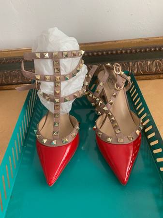 Like New Valentino Red Patent Multi strap Rockstud shoes. Size 6. ( Used once for a photo shoot ) about 3 inches heels.