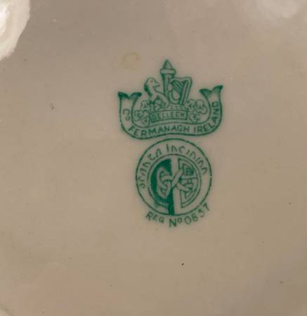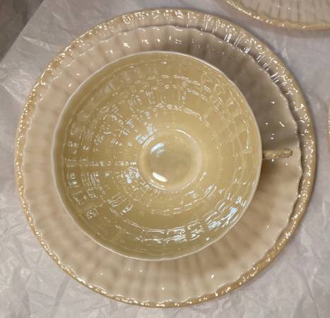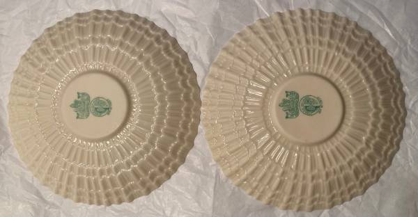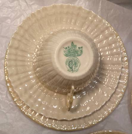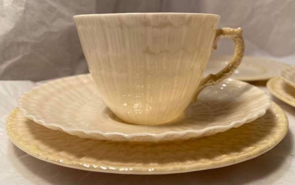 2 Vtg Belleek Limpet Teacup/Saucer & 3 Dessert Dishes-6th Green Mark - $60 (Gramercy)