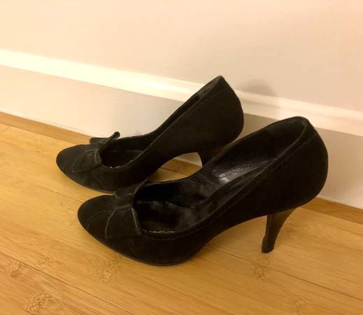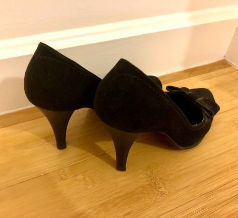 Beautiful women's velvet heeled bow embellished shoes!! Size: 7.5 Color: Black.