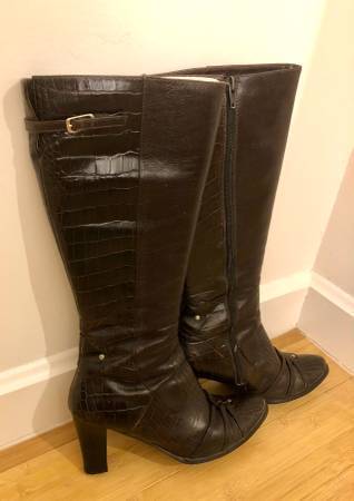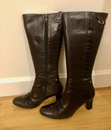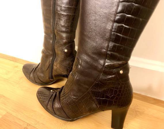 Women's Genuine Leather Fur Heeled Crocodile High Boots Brown Size 7.5 - $165 (Financial District)