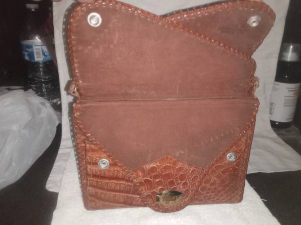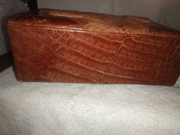 Similar vintage handbags can be found on online marketplaces, often categorized as "Crocodile/Alligator Clutch Brown Vintage Bags".