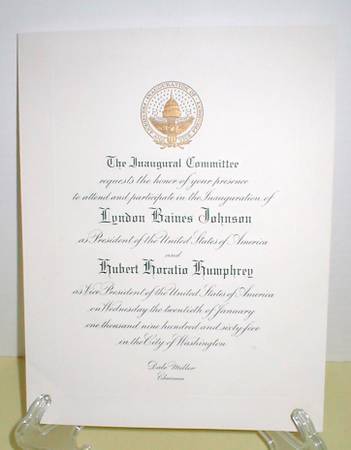 Lyndon Baines Johnson & Hubert Horatio Humphrey 1965 Inaugural invitation in excellent condition. All reasonable offers considered.