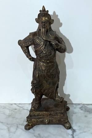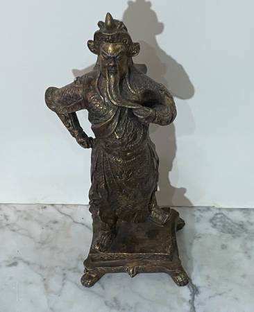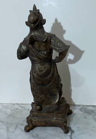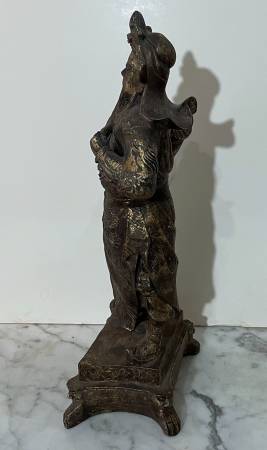 BEAUTIFUL GOLD COLOR PAINTED RESIN CHINESE STATUE OF A NOBLE MALE FIGURE Size: 14" 2/8 tall 5" 1/2 wide 4" 2/8 deep Condition: In overall good condition, no breaks Available for pickup only 78th...
