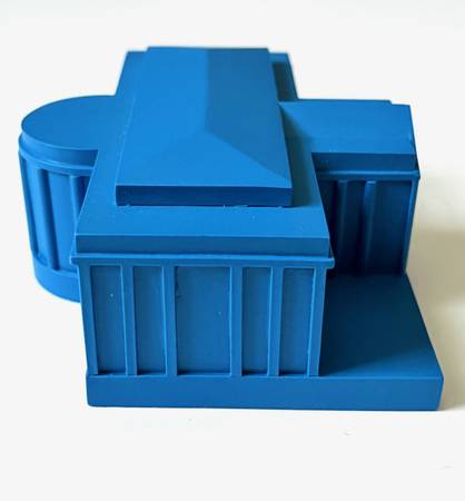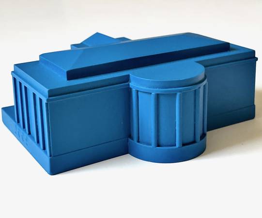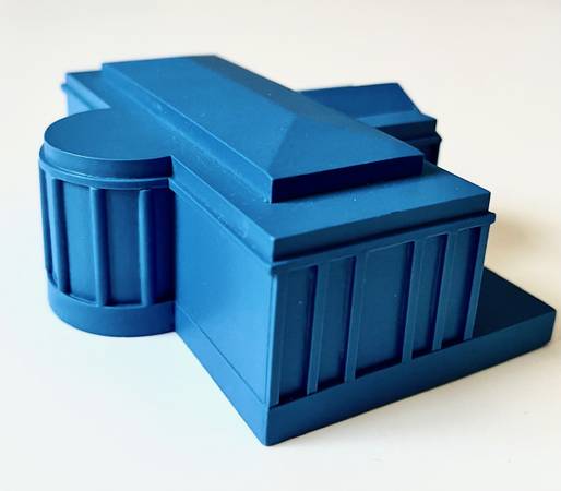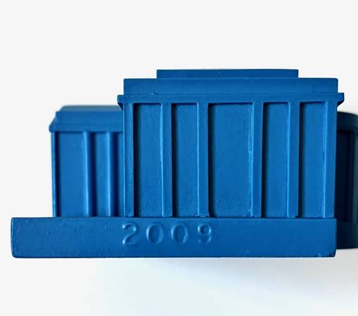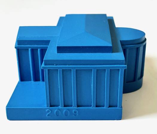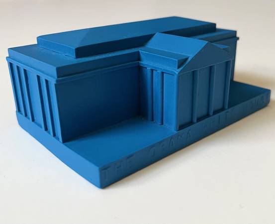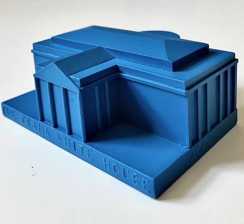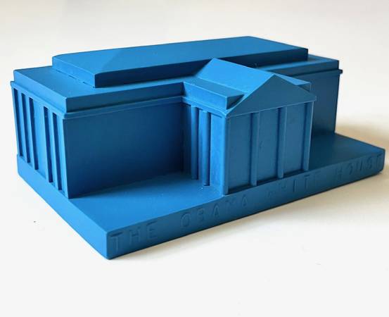 Background: This design object is a presidential inauguration souvenir commemorating the first Black U.S. president by focusing on the architecture of the White House and commenting on color by making the White House blue, which most immediately signifies the Democratic Party, but also invites additional interpretations.