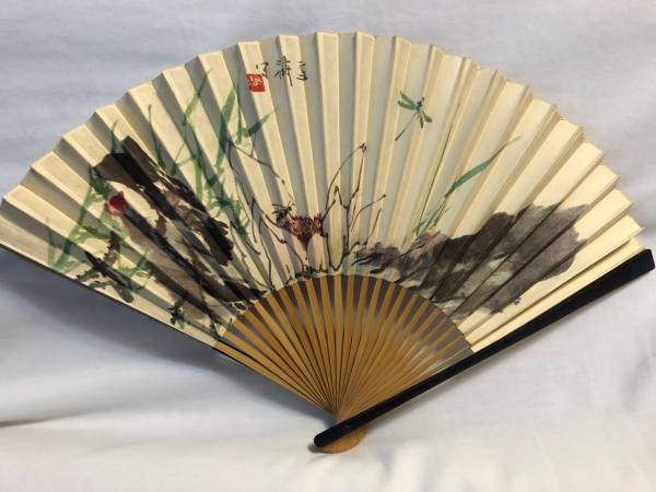 Chinese paper hand fan, approximately 14” by 8 1/2”, never-used