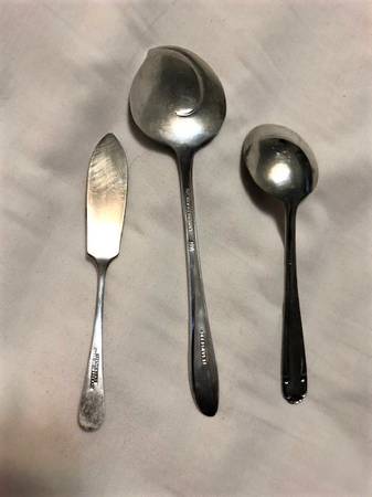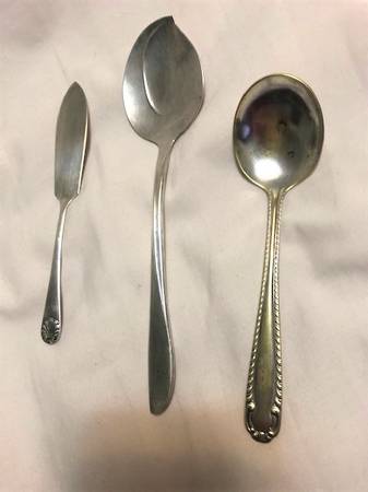 Homes & Edwards IS Deepsilver serving spoon 6 3/4" long - $15 silverplate spoon, 5" long - $10 Celtic EPNS Made in England butter knife, 4 3/4" long - $8
