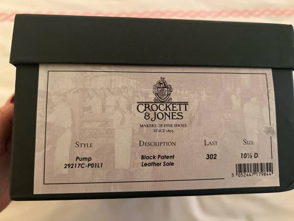 From Crockett & Jones of England, BRAND NEW !!!!!! "The Pump" is the classic black patent pump. This elegant shoe is the perfect pair for your tuxedo. Built on Last 302. Sz 10.5 UK 11.5 US Brand...