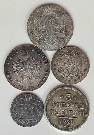 Five Russian replica coins, interesting numismatic novelty items. Cash/pick up only.