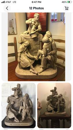 Listing tonight possible the most sought after Magic collectable with the exception of owning personally something from Houdini himself. This is “The Traveling Magician” a sculpture work by John Rogers 1877. The group is in great condition. Please review all photos provided as they are your best description. Please ask all questions as this listing is sold “as is” without return or refund. Pick-up only on this group located in Worcester,Massachusetts 01602….other Rogers Groups are available as well as a period Victorian Pedestal Base for this beautiful piece…..the Magician price is $11,999.95 or best offer…Thanks for looking.