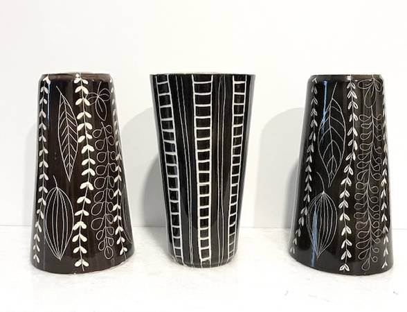 Dark brown and white glazed ceramic.