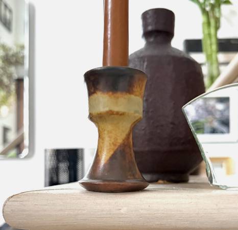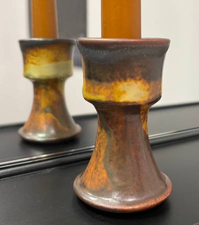 Liisa Hallamaa Larsen (Finnish, 1925–2008) Candle Holder, ca 1960 Made by Arabia, Finland Polychrome glazed ceramic H: 3.14 x Diam. 1.96 in. (8 x 5 cm) Condition: Excellent