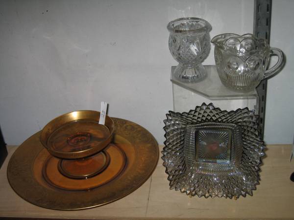 DEPRESSION GLASS. Clear pressed glass pieces... phone number please