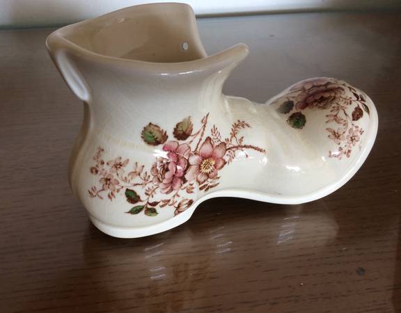 This collectible piece was bought in the 1950s and never taken out of the box. Pretty floral design in pinks, browns and greens on an ivory colored pottery. In pristine, gift-worthy condition. Can...
