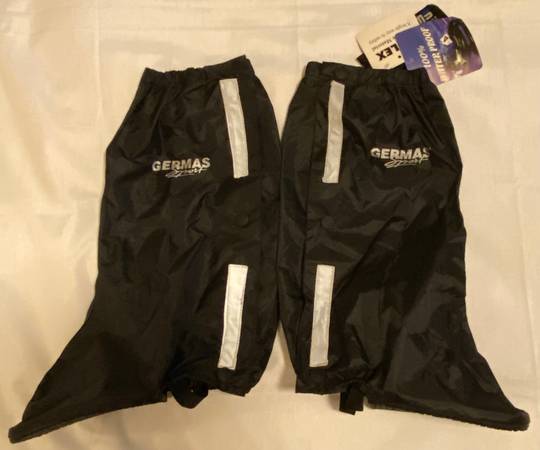 The Germas Motorcycle Waterproof Boot Covers are a protective gear designed for motorcycle and powersports enthusiasts. Made with PVC and rubber materials, these boot covers feature a waterproof design with sealed seams to keep you dry in all weather conditions. The reflective elements and windproof features make them ideal for riding in low light and windy situations. The black and silver color scheme with the Germas Sport logo adds a stylish touch to your gear, while the leg stirrups and breathable lining ensure a comfortable fit. Made in Pakistan, these lightweight and foldable boot covers are a must-have for any rider looking for durable and functional protection.