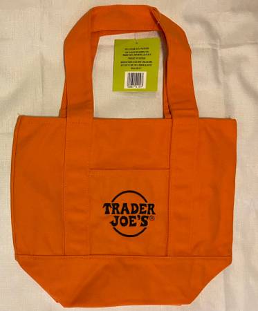 The NWT Trader Joe's Trick Or Treat Mini Tote Bag is a limited edition Halloween accessory perfect for carrying your essentials in style. Made of durable canvas material with a small size and a capacity of 15 quarts, this orange tote features a traditional style and is foldable for easy storage when not in use. Whether you're heading out for a spooky night or just want a cute bag to add to your collection, this Trader Joe's tote is a must-have for any Halloween enthusiast.