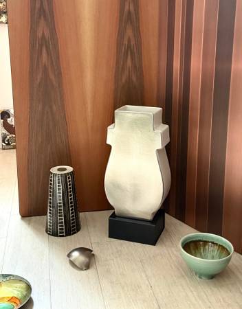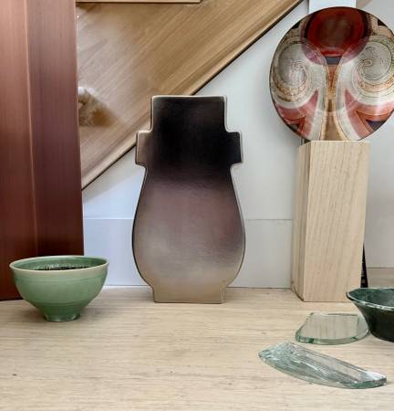 Note: The vase's narrow shape and reflective glaze work well in New York City spaces.
