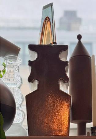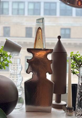 Note: The vase's narrow shape and reflective glaze work well in New York City spaces.