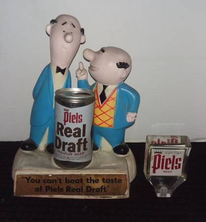 Piels Real Draft Bert & Harry display with beer can and tap. Display measures, 8.5" wide 13" tall Tap measures 4" tall, 3.75" wide All in very good contion. $500.00 or best offer