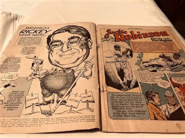 This 1950 Fawcett Issue is a very rare comic book that would be a great addition for baseball and/or comic book collectors. This issue particularly emphasizes Robinson's character, versatility as an athlete, his historic meeting with Branch Rickey, his leadership, and entrance to the minor and major leagues, etc.