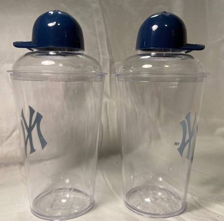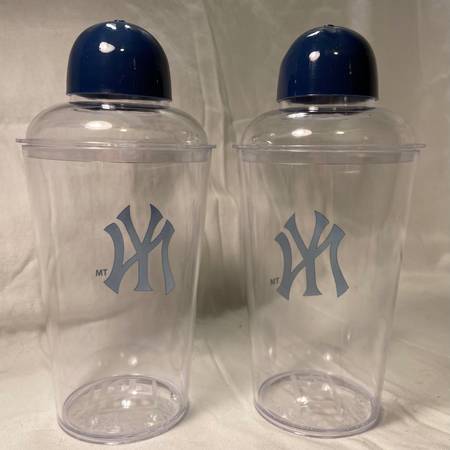 The set includes two plastic cup shakers/tumblers with mini hats featuring the iconic Yankee Stadium design, officially licensed by Major League Baseball for the year 2025. These original items are perfect for fans of the New York Yankees, showcasing the team's logo and colors. The cups are great for enjoying your favorite beverages while showing off your team spirit at home or in the stands. This limited edition set is a must-have for any baseball fan looking to add some vintage sports memorabilia to their collection.