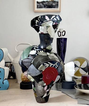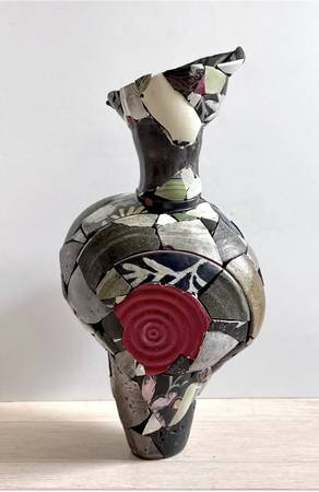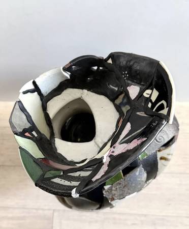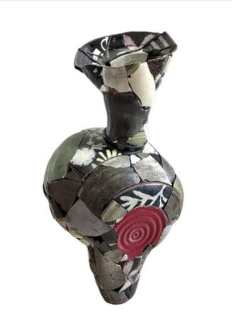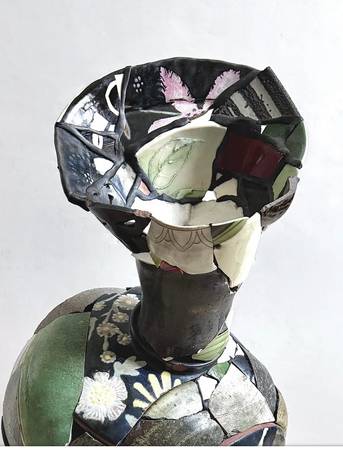 Inspired by his personal history being raised in the American South, Chase Travaille creates surreal sculptures that subvert the notion of the idyllic countryside. Dark Humor, transgressive thoughts, and desires are articulated in objects that invite a dialogue concerning sexuality, social class, and the inherent theatricality of southern culture. His current body of work Shard Amphora is focused on attaching the ceramic shards of different artists to rebuild new vessels as a response to the events of 2020 and its lingering aftermath into today. Chase received his MFA from Alfred University in 2019 and was awarded the Outstanding Student Achievement in Sculpture Award from the International Sculpture Center the same year. He has attended residencies internationally and finished his long-term residency at the Archie Bray Foundation in the summer of 2021. He currently lives and works in Northwest Arkansas. (From the artist's website)