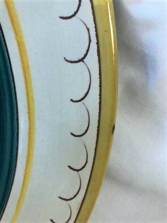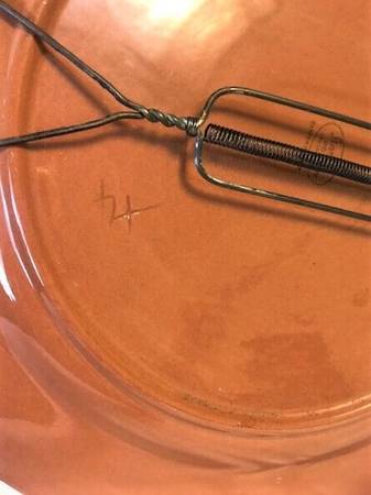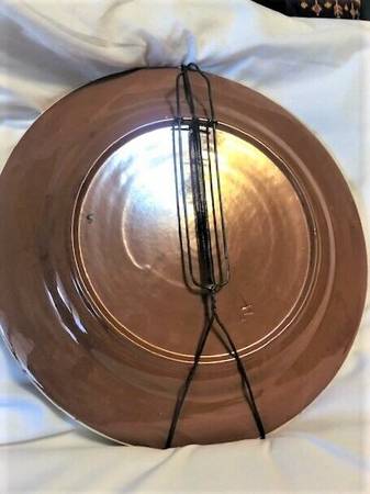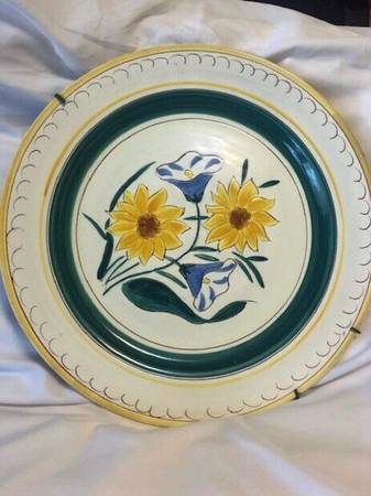 Vintage Stangl 14" Garden Flower Chop Plate and Wire Plate Hanger, diameter is 14 1/4", made in Trenton, New Jersey, The wire plate hanger can be removed. has 2 small chips on front rim