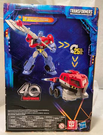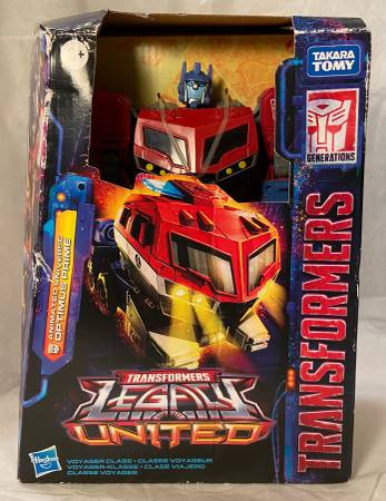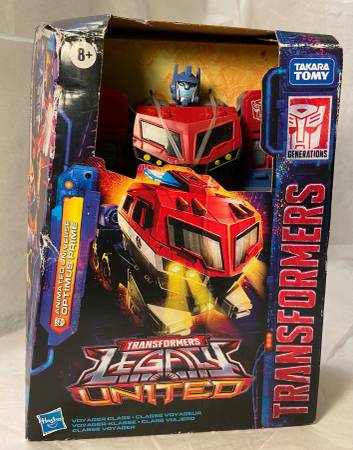 The Transformers Legacy United Voyager Class Animated Universe Optimus Prime Figure is a special edition action figure manufactured by Hasbro in 2024 to celebrate the 40th anniversary of the Transformers franchise. This multicolor Optimus Prime character is part of the Voyager series, fully jointed, boxed, and features transforming abilities. It is a collector's edition model with a theme centered around Transformers & Robots. There is some damage to the outside of the box as seen in photos. Optimus Prime & his weapon are intact.