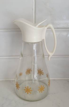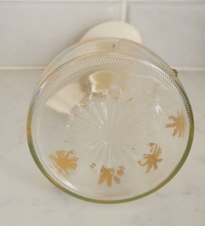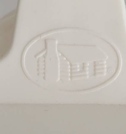 very good condition. glass jar with plastic lid and pour spout. Log cabin logo is on the the lid