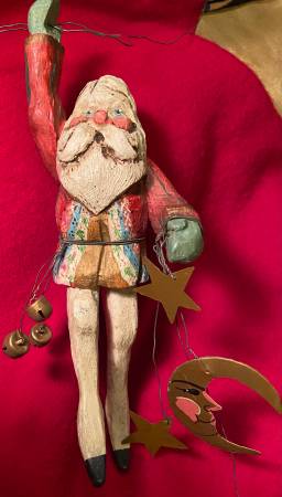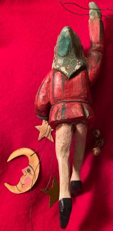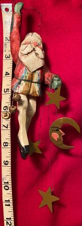 This vintage 1988 House of Hatten Christmas ornament features Santa holding a metal moon and stars, standing at 9 inches tall. The ornament is a unique piece from the 1980s, with a color scheme of multicolor and a wood Santa ornament design. The House of Hatten brand and franchise are associated with this collectible item, making it a special addition to any Christmas ornament collection. The Santa ornament with moon and stars theme captures the essence of the holiday season and would be a charming decoration for any Christmas tree.
