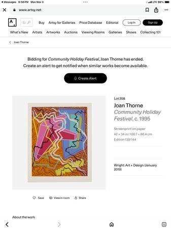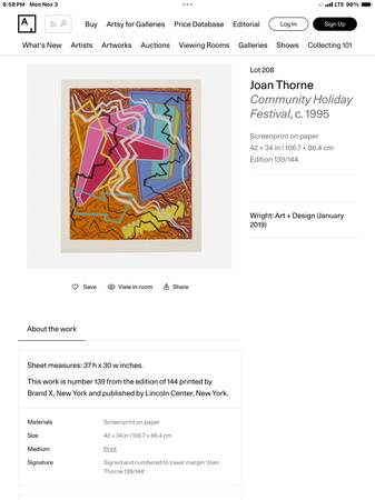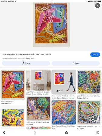 Vintage abstract Joanne Thorn Framed 46”38” (Reduced) $1,200. $800. OBO TwoOneFive-317-5300 Show Place 40w. 25th St. Ocean City NJ or PIER 3, Columbus Blvd., Philly