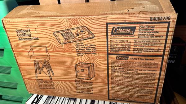 Selling a vintage Coleman 2-burner propane camp stove, model 5400A700, with the original wood-grain box. Works perfectly. Great for camping or as a collectible piece of Coleman history.