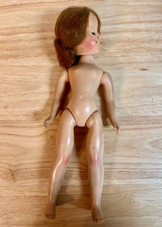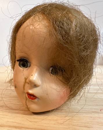 Halloween has arrived, time to stock up on creepy dolls. This dismembered beauty comes with a pair of bloomers, a skirt, and a jacket. Her eyes open and close. She seems to be made out of an older harder plastic. Not sure what her hair is made of. Horsehair? I'm also not sure if her various limbs can be reattached, but no matter. She will looky creepy as hell pasted to your Halloween door. And you artists out there, I bet you could do wonders with her.