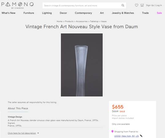 Vintage French Art Nouveau Style Vase (from Daum) for Sale.