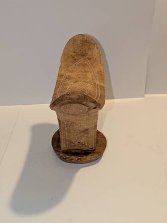 Authentic vintage hand-carved African wooden headrest or small stool, featuring a curved top with an incised lizard motif and a solid base.
