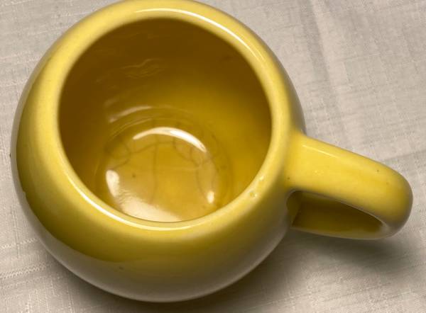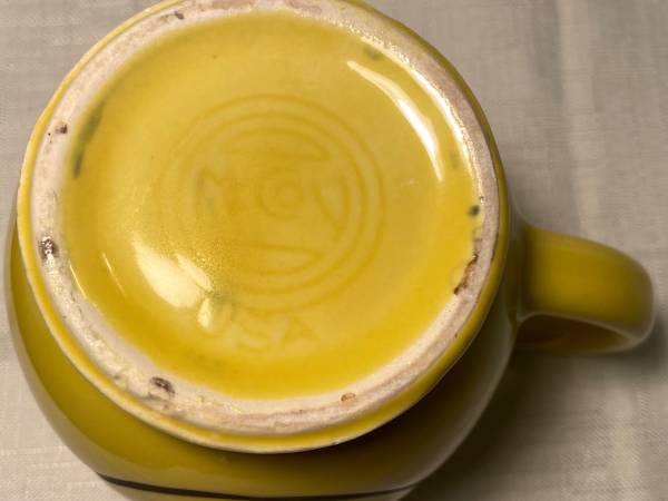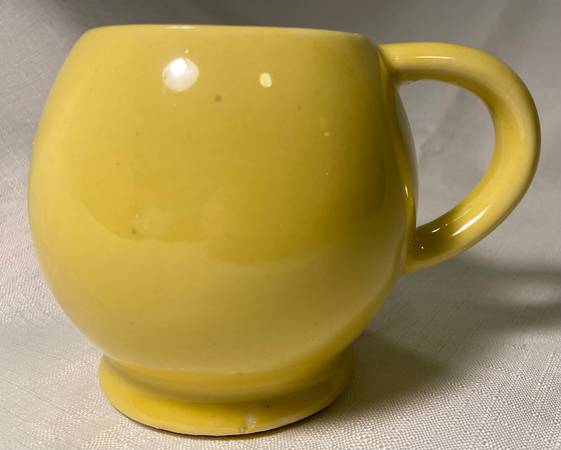 This vintage McCoy USA yellow smiley face mug is a collectible coffee tea cup perfect for all occasions, including birthdays and housewarmings. Made of ceramic and porcelain, this medium-sized mug features a cheerful smiley face design in a vibrant yellow color. Crafted in the 1980s by the Koi brand, this original piece is sure to brighten any kitchen or home decor with its friendly and nostalgic charm. Ideal for both hot and cold beverages, this unisex coffee mug is a unique and thoughtful gift for any occasion.No cracks or chips, some discoloration inside on bottom of mug.