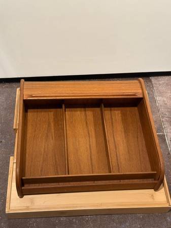 Vintage Mid-Century Modern Solid TEAK Wood Rolltop Sectional Organizer for Sale.
